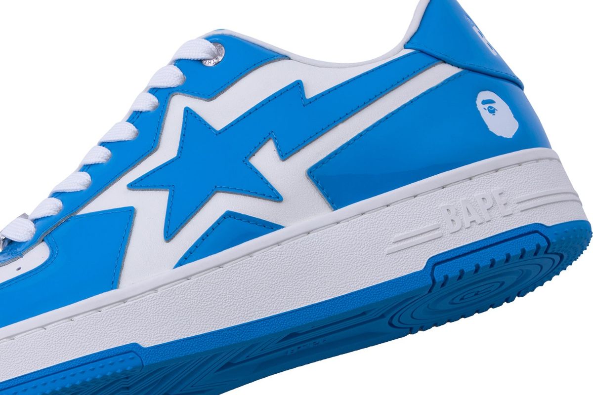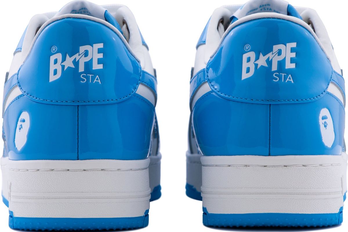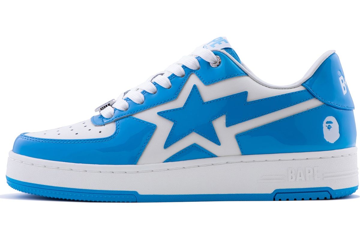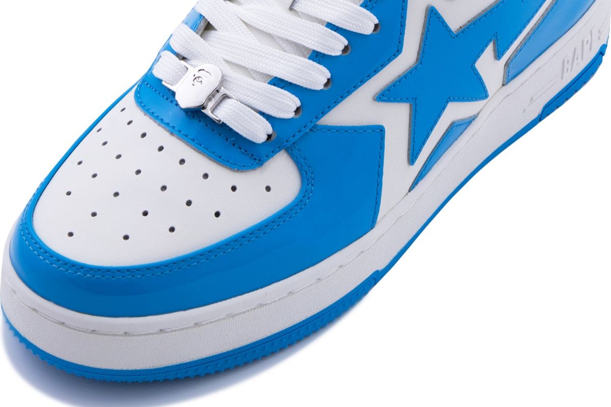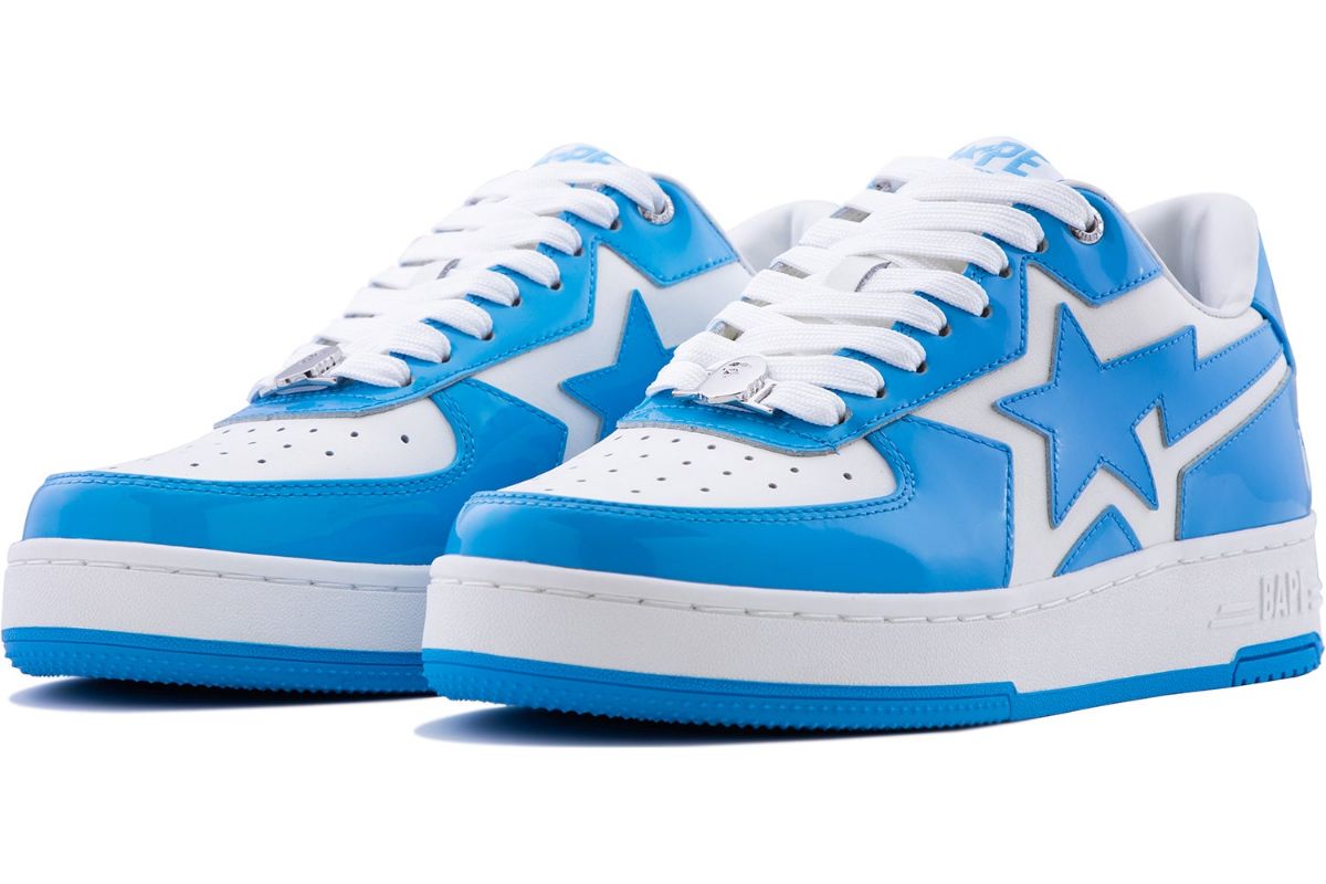 Die blaue Farbgebung verleiht dem Schuh einen frischen, modernen Look, während das bekannte BAPE STA-Sternlogo an den Seiten sofort für Wiedererkennungswert sorgt. Glänzende Oberflächen und präzise Details unterstreichen den charakteristischen Stil, für den A Bathing Ape weltweit bekannt ist.