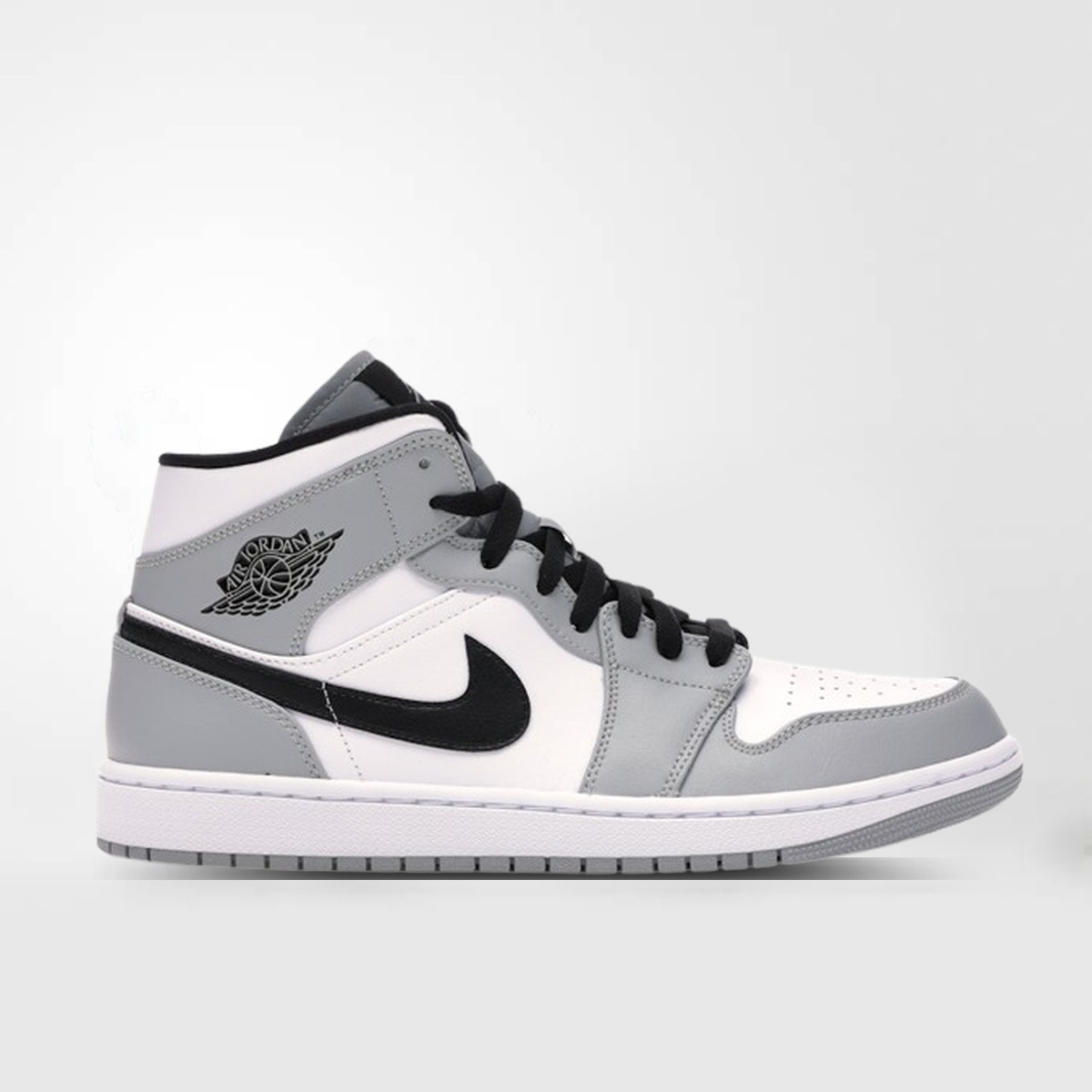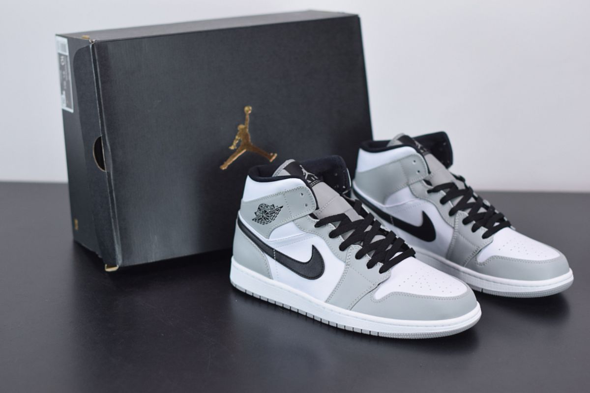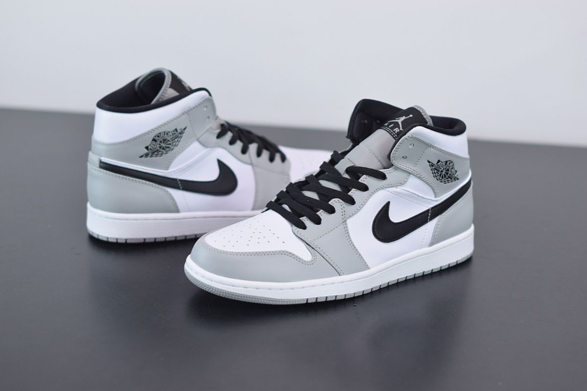 Der Air Jordan 1 Mid Light Smoke Grey ist perfekt für alle, die ein Paar Schuhe suchen, das Komfort, zeitloses Design und Modernität vereint, und zeichnet sich durch seine raffinierte Schlichtheit und Vielseitigkeit aus.