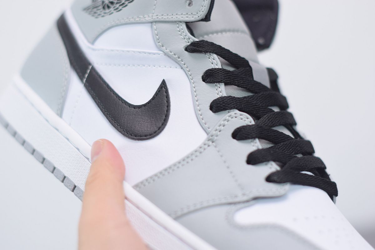 Der Air Jordan 1 Mid Light Smoke Grey stellt einen Mittelweg zwischen High- und Low-Cut-Modellen dar.