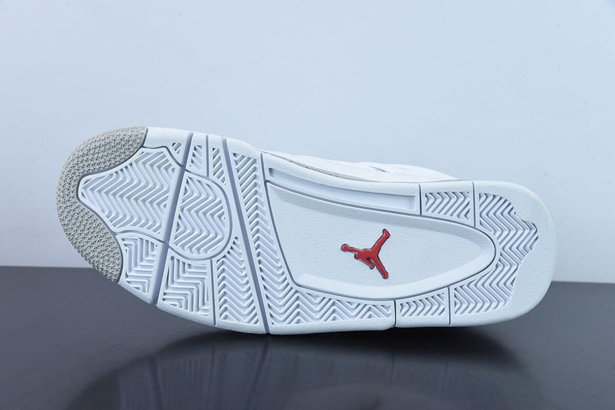 Der Air Jordan 4 White Oreo verfügt über ein Obermaterial aus weißem Leder und Mesh, das durch Akzente in Tech Grey an den Ösen und der Zwischensohle ergänzt wird. Ein rotes Jumpman-Logo ist auf die Zunge gestickt und verleiht diesem Modell in neutralen Farbtönen einen Hauch von Farbe.